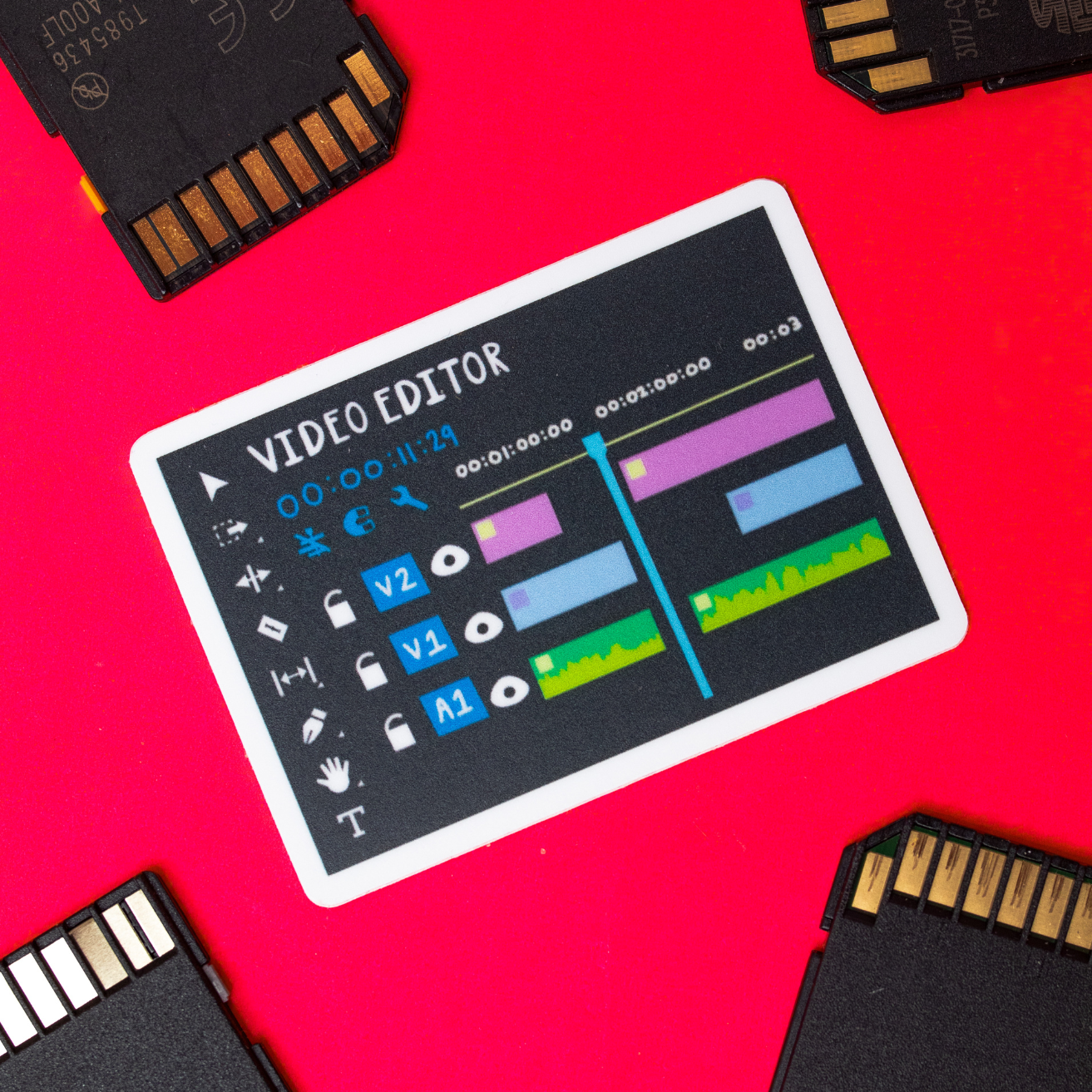 This high-quality vinyl sticker is perfect for any video editor, it's designed to look like a video editing timeline and can be applied to any smooth surface. The design features all the elements a video editor would recognize, like video tracks, audio tracks, and keyframes.